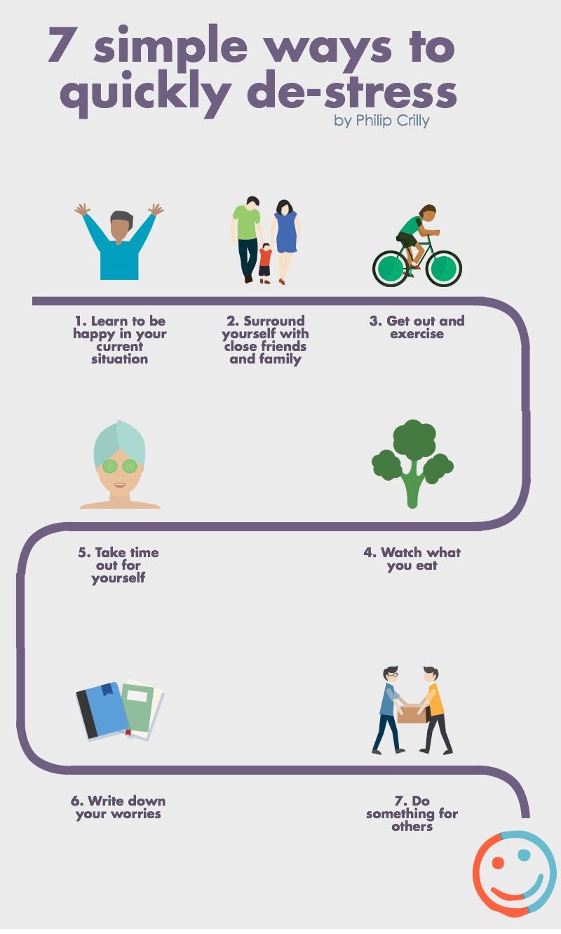 7 simple ways to quickly de-stress Posted on August 17, 2015 by philipcrilly Reply philip crilly de-stress For the full article, click here